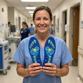 Soleva™ kombiniert gezielte Akupressur mit sanfter Magnetfeldtechnologie – für weniger Ermüdung, besseren Halt und ein leichteres Laufgefühl im Pflege- & Klinikalltag.