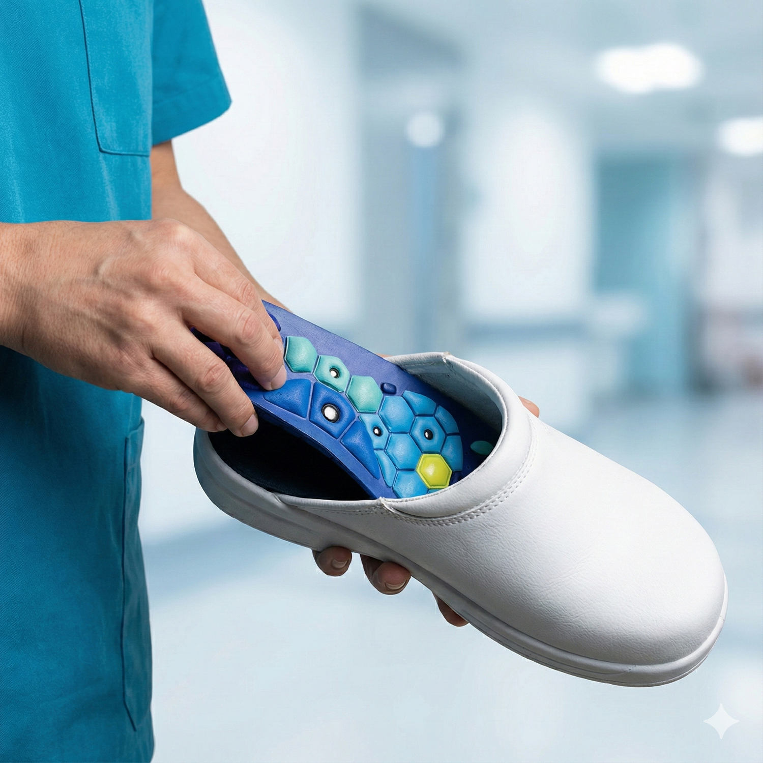 Entlastet Füße, Knie & Rücken bei 8–12-Stunden-Diensten auf harten Klinik- und Pflegeböden.