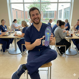 „Als Physiotherapeut behandle ich täglich Pflegekräfte mit Fuß- und Rückenschmerzen durch lange Dienste. Soleva™ entlastet Ferse, Fußgewölbe & Knie spürbar – ideal für harte Klinikböden und hohe Belastung.“